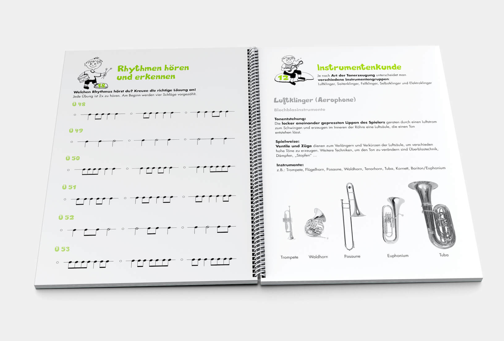 Der Schwierigkeitsgrad der Übungen wächst stets mit, sodass junge Musikschülerinnen spielerisch gefordert, aber nie überfordert werden.